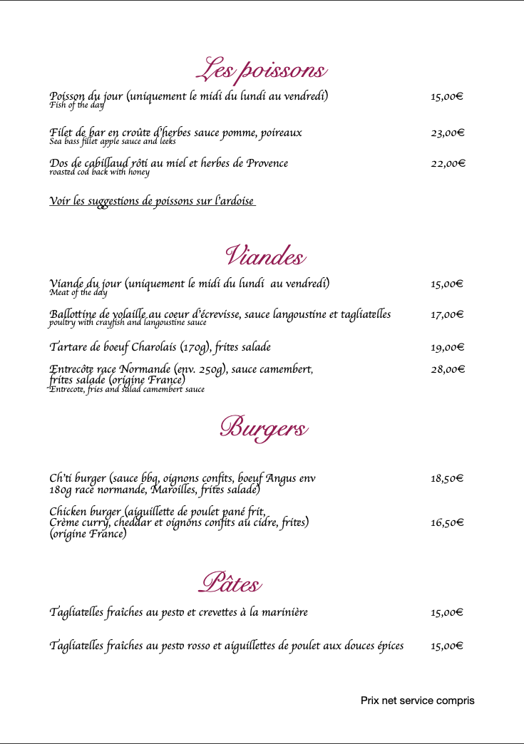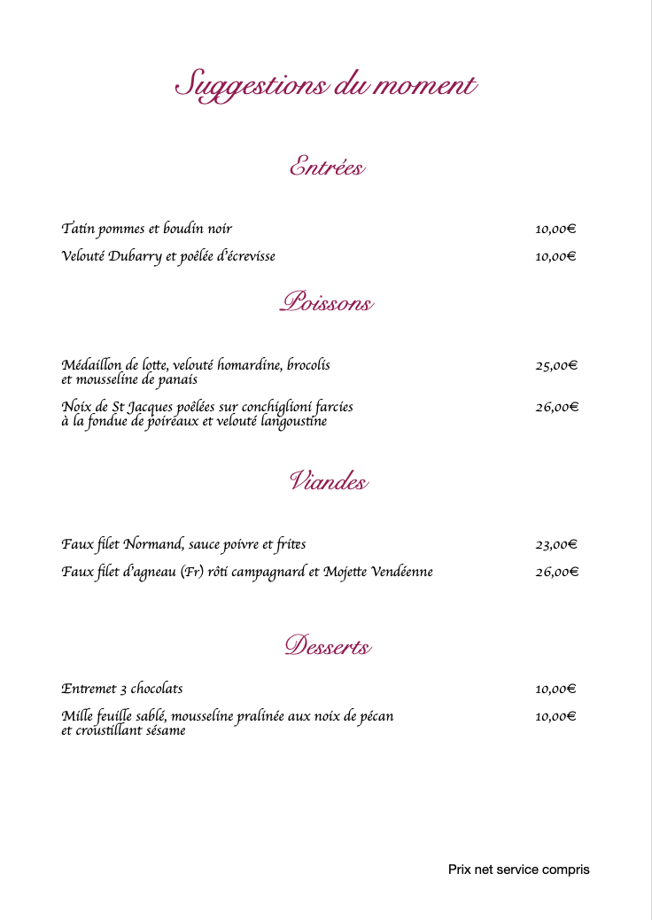 Notre restaurant propose une cuisine traditionnelle de qualité élaborée à partir de produits frais et locaux.